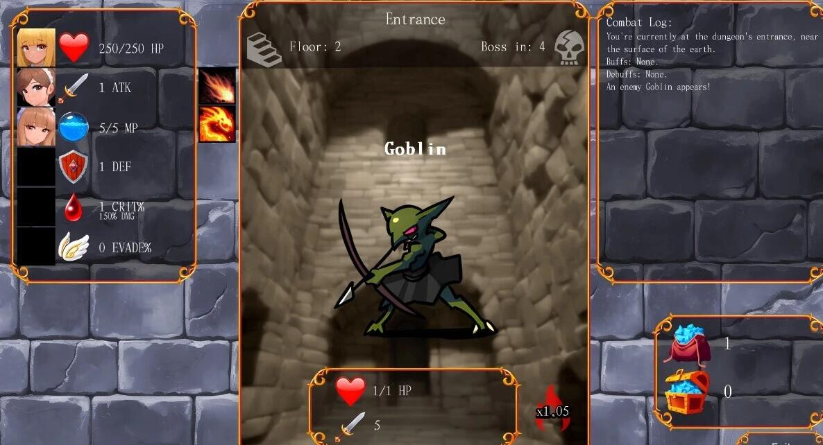 这个游戏是一个带有可选地下城探险玩法的视觉小说。